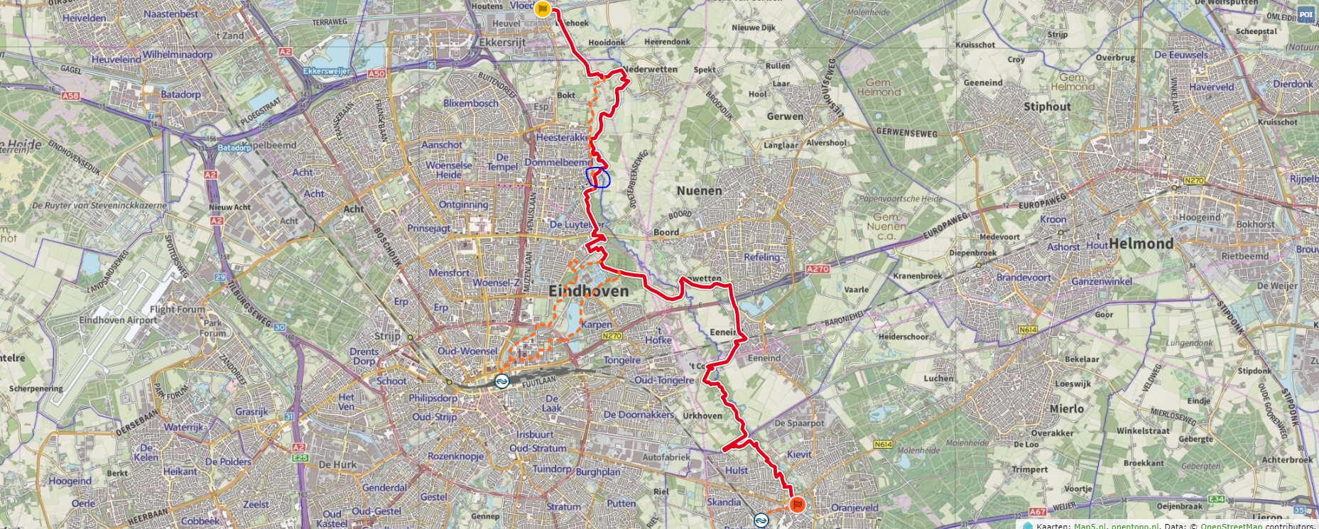 Helaas liep ik langs de Kleine Dommel vast op een enorme diepe plas waar ik met geen mogelijkheid door of om kon komen, dus moest ik een eind terug, en omlopen om weer op mijn route te komen.